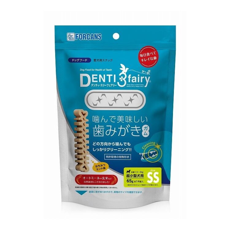 ・「デンティ・スリーフェアリー」は、ペット(愛犬)の歯垢を簡単かつ安全に除去してくれる、機能性デンタルフード(スナック)です。