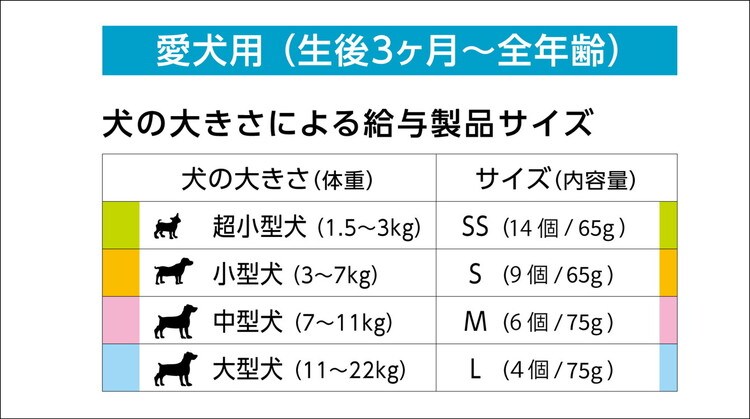 ・体重に合ったサイズを選び、朝、夜1本ずつお与えください。