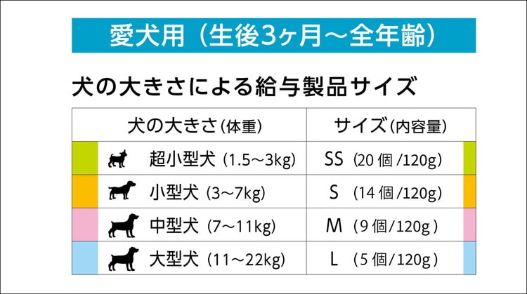 ・体重に合ったサイズを選び、朝、夜1本ずつお与えください。
