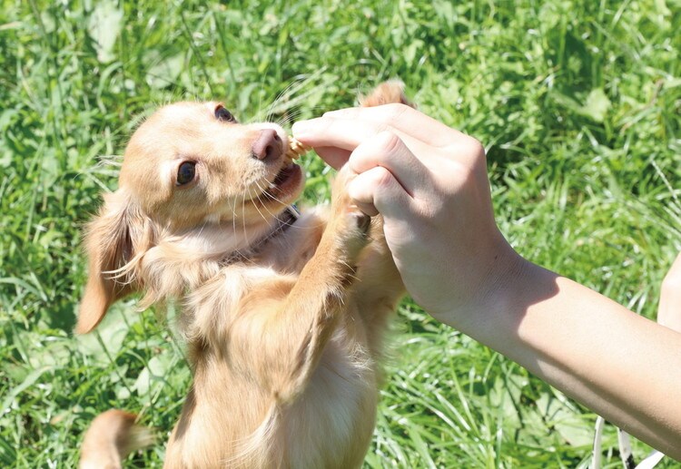 ・愛犬が本品を噛まずに丸飲みし、のどに引っかかることのないよう、食べ切るまで飼い主は目を離さないようにして下さい。