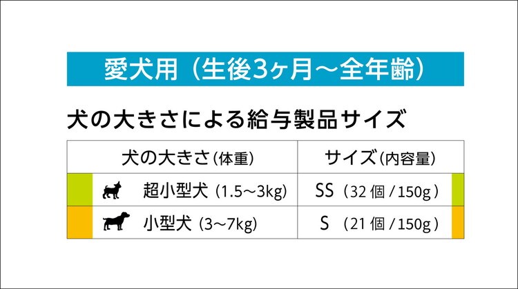 ・体重に合ったサイズを選び、朝、夜1本ずつお与えください。