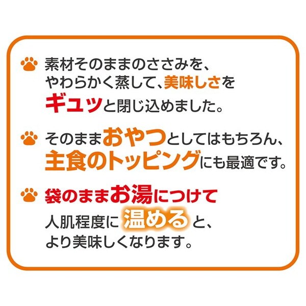 ・素材そのままの鶏ササミをやわらかく蒸して美味しさをギュッと閉じ込めました。