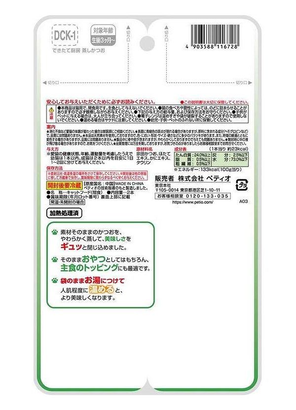 【30個セット】 ペティオ できたて厨房 キャット 蒸しかつお 2本【ポイント10倍】 【送料無料】