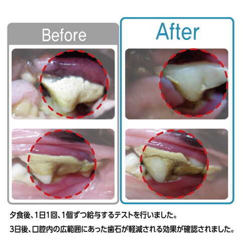 ・愛犬が本品を噛まずに丸飲みし、喉に引っかかることのないよう、食べきるまで飼い主は目を離さないようにしてください。