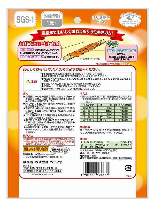 【4個セット】 ペティオ ササミ巻き ガム 10本入【ポイント10倍】