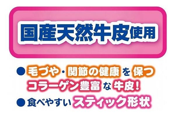 ・国産天然牛皮を食べやすいスティック形状に仕上げました。