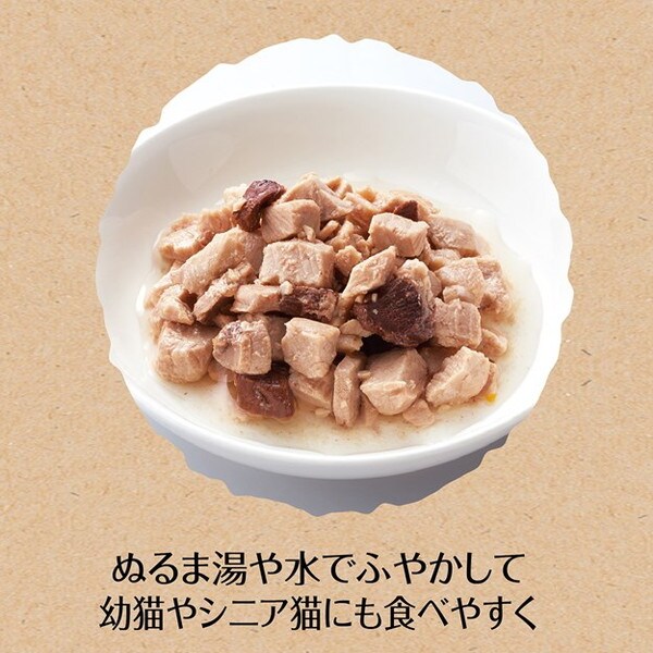 ・ぬるま湯や水でふやかすと、幼猫やシニア猫にも食べやすくなります。