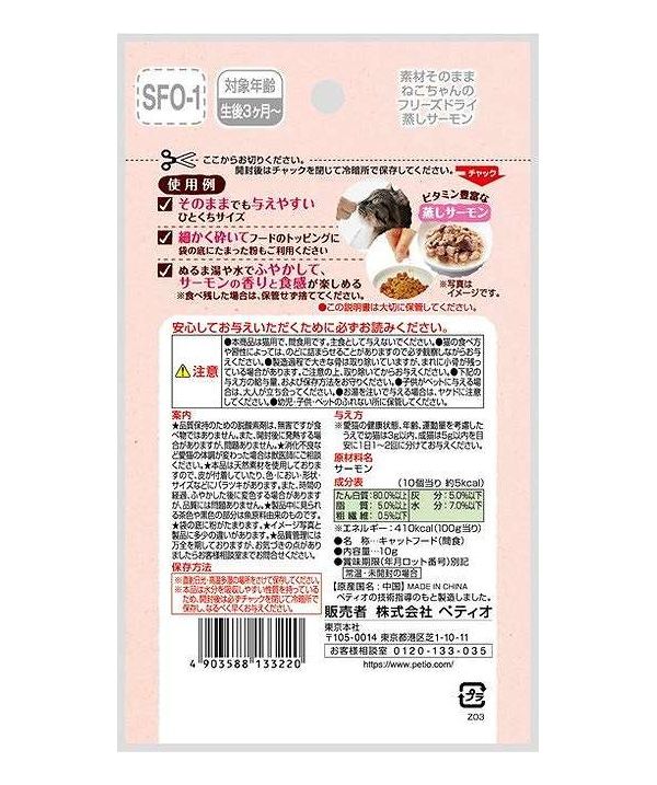 【20個セット】 ペティオ 素材そのまま ねこちゃんの 完全無添加 フリーズドライ 蒸しサーモン 10g【ポイント10倍】 【送料無料】