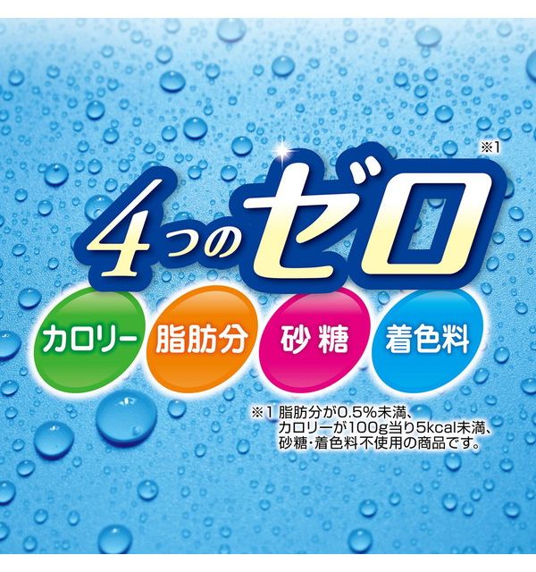 ・「カロリー」「脂肪分」「砂糖」「着色料」の4つのゼロがうれしい。