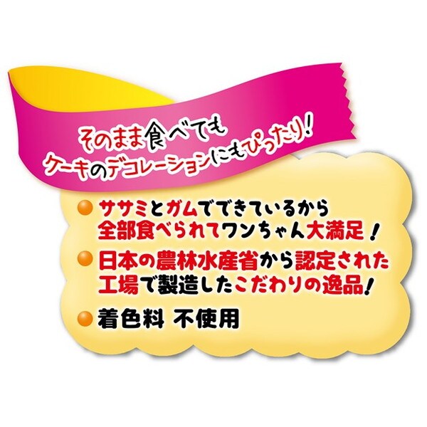 ササミとガムでできているから全部食べられてワンちゃん大満足!そのまま食べてもケーキのデコレーションにもぴったり!誕生日や記念日に使ってね!0~9の数字入り。着色料不使用。