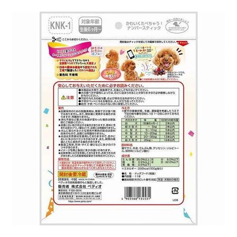 鶏ササミ、牛皮、でんぷん類、グリセリン、ソルビトール、保存料(ソルビン酸K)