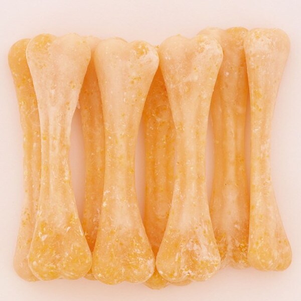 コーンスターチ、とうもろこし、鶏ササミ、乳たん白、魚油(DHA、EPA含有)、加工でんぷん、グリセリン、カゼイン(乳由来)、炭酸Ca、チキン香料、着色料(黄5号)