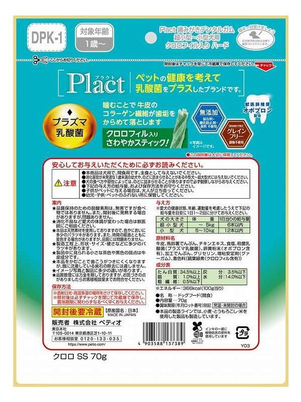 【4個セット】 ペティオ プラクト 歯みがきデンタルガム 超小型~小型犬クロロフィル入りハード 70g【ポイント10倍】 【送料無料】