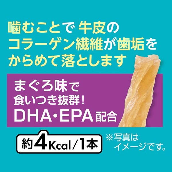 噛むことで牛皮のコラーゲン繊維が歯垢を絡め落とします。