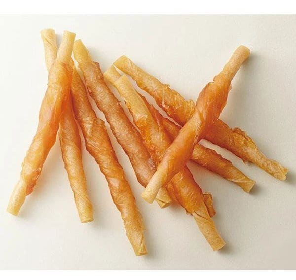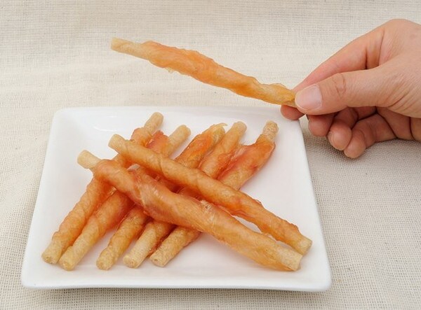 低脂肪・良質たん白質豊富なササミをやわらかく仕上げて、芯までおいしく食べられるやわらか弾力ガムに巻きました。