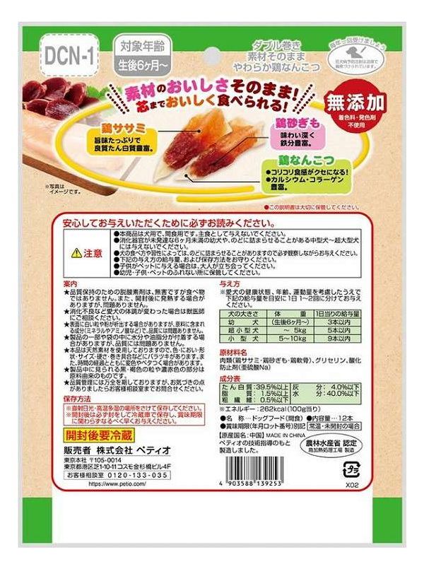 【4個セット】 ペティオ ダブル巻き 素材そのまま 無添加 やわらか鶏なんこつ 12本入【ポイント10倍】