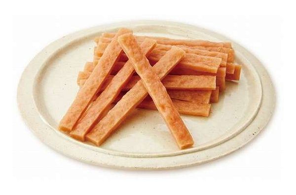 肉類(鶏・鶏ササミ)、小麦粉、植物性油脂、酵母エキス、チキンエキス、ソルビトール、加工でんぷん、グリセリン、リン酸塩(Na)、カゼインNa、着色料(βーカロテン・紅麹)