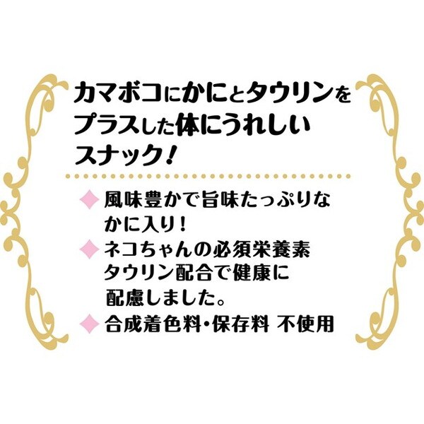 風味豊かで甘みたっぷりのかに入り!ネコちゃんの必須栄養素タウリン配合で健康に配慮しました。保存料不使用