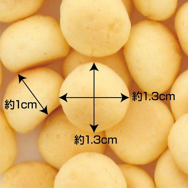 お腹にうれしいオリゴ糖配合で、食物センイ&ビタミンC・E豊富なさつまいも入りの美味しいボーロ♪北海道産馬鈴薯でん粉・砂糖の約1/2カロリーの還元麦芽糖使用。合成着色料不使用。