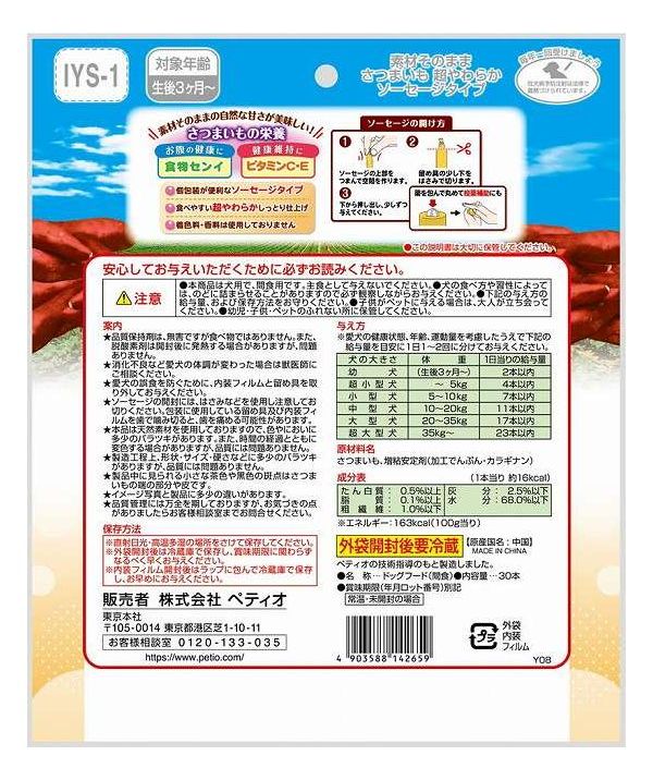 【12個セット】 ペティオ 素材そのまま さつまいも 超やわらかソーセージタイプ 30本入【ポイント10倍】 【送料無料】