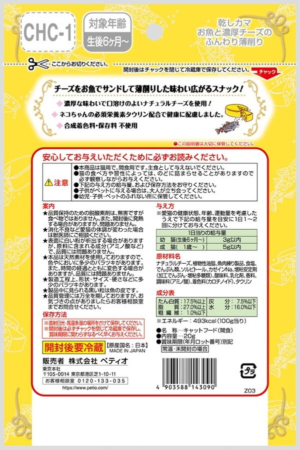 【4個セット】 ペティオ キャットSNACK 乾しカマ お魚と濃厚チーズのふんわり薄削り 20g【ポイント10倍】