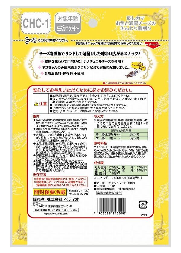 【8個セット】 ペティオ キャットSNACK 乾しカマ お魚と濃厚チーズのふんわり薄削り 20g【ポイント10倍】 【送料無料】
