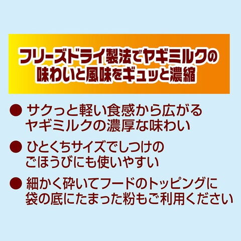 ・フリーズドライ製法でサクっと軽い食感から広がるヤギミルクの濃厚な味わい