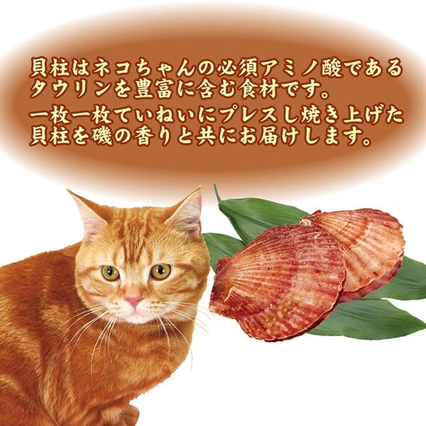 ・ネコちゃんの必須アミノ酸であるタウリンを豊富に含む貝柱を100%使用。