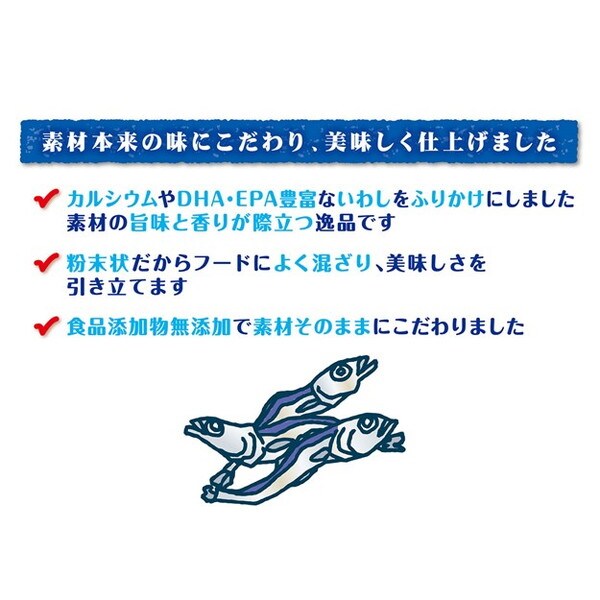 ・カルシウム・DHA・EPAが豊富ないわしをふりかけにしました。素材の旨味と香りが際立つ逸品です。