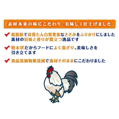 ・低脂肪で良質たん白質豊富なささみをふりかけにしました。素材の旨味と香りが際立つ逸品です。