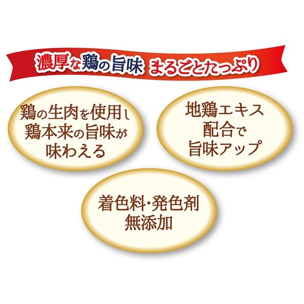 ・鶏の生肉を使用し鶏本来の旨味が味わえる。地鶏エキス配合で旨味アップ。