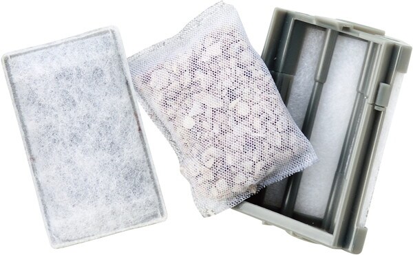・活性炭が悪臭・ニゴリの元を吸着し、ゼオライトがアンモニアを吸着します。さらにハードマットがゴミをキャッチします。※魚病薬などの薬品類をご使用の際は、ろ過材内の活性炭が薬品類の有効成分を吸着し、効果がなくなりますのでご注意ください。
