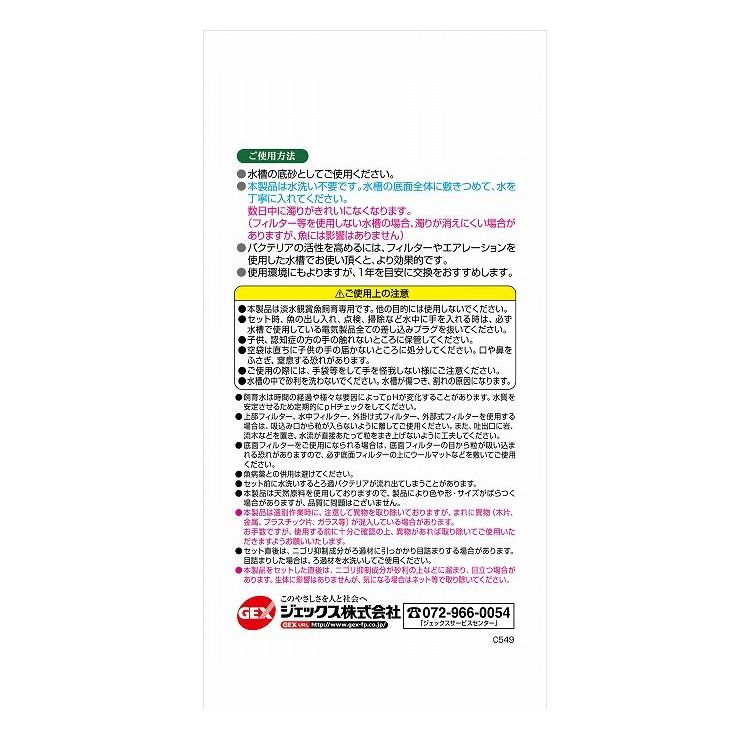 水洗いなしですぐに使用できる観賞魚用天然砂です。天然のニゴリ抑制成分配合。汚れを分解するろ過バクテリア入り。