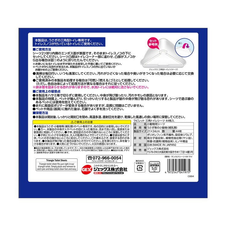 ジェックス GEX ラビレット 三角トイレシーツ 44枚
