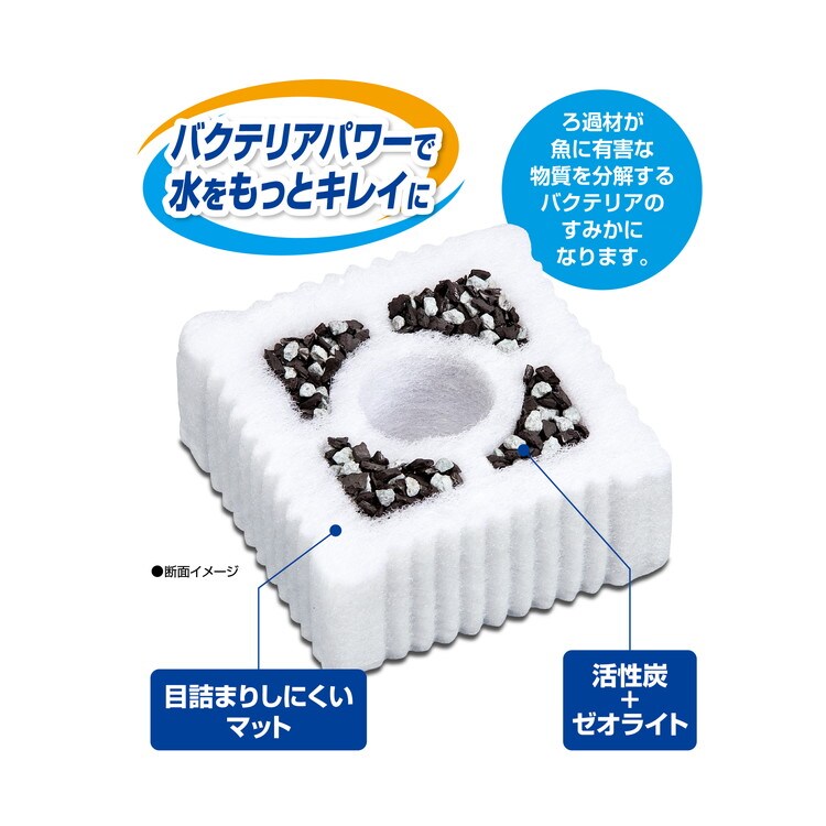ロカボーイM用交換用マットです。活性炭+ゼオライトを配合したろ過材が魚に有害な物質を分解するバクテリアのすみかになります。
