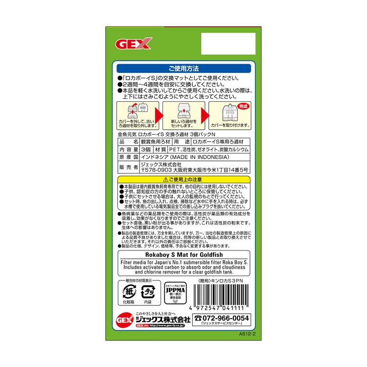 GEX ジェックス 金魚元気 ロカボーイS 交換ろ過材-N お徳用3個パック【ポイント10倍】
