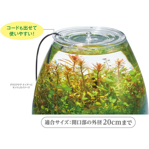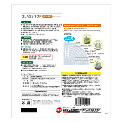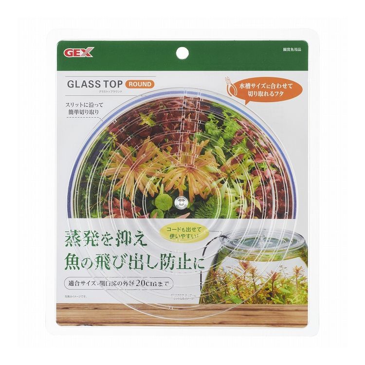 ・グラスアクアや金魚鉢等の円形水槽の開口部に乗せて、水の蒸発を抑え、魚の飛び出しを防止するプラスチックフタです。