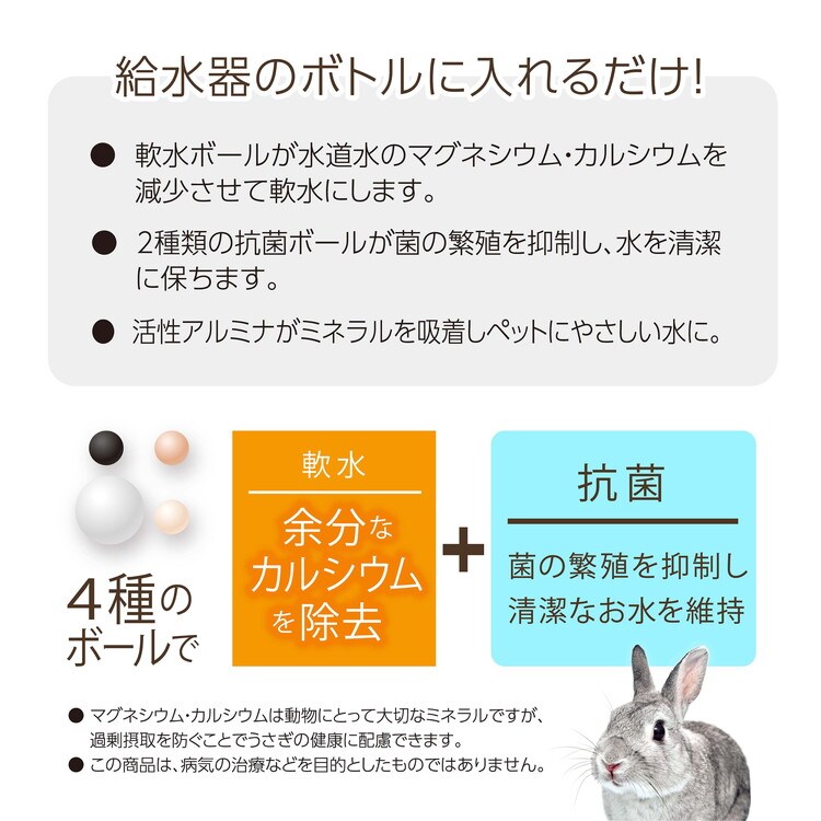 ・軟水ボールが水道水のマグネシウム・カルシウムを減少させて軟水にします。