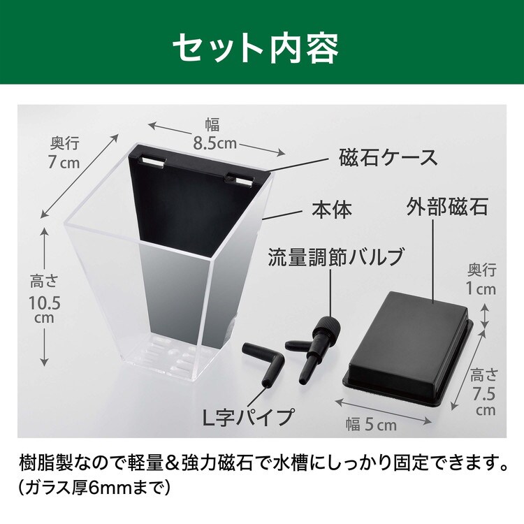 ・強力磁石で水槽内のお好みの場所に固定可能