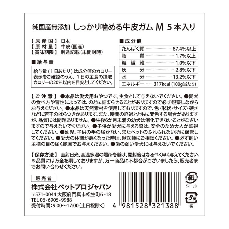 【2個セット】 ペットプロ HappyDays 純国産無添加 しっかり噛める牛皮ガムM 5本入り【送料無料】