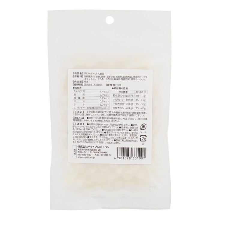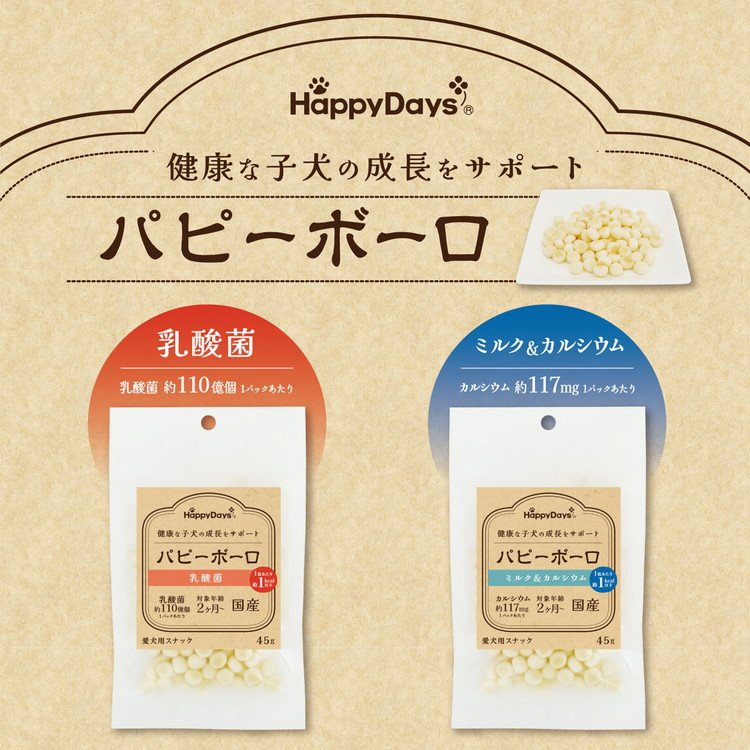【8個セット】 ペットプロ HappyDays パピーボーロ 乳酸菌 45g 国産 日本製 犬用 犬 おやつ スナック ボーロ【ポイント10倍】 【送料無料】