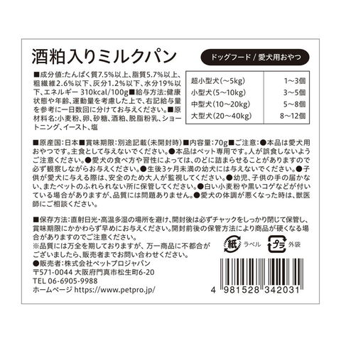 【4個セット】 ペットプロ 国産おやつ 酒粕入りミルクパン 70g 国産 日本製 犬用 犬 おやつ スナック パン【ポイント10倍】