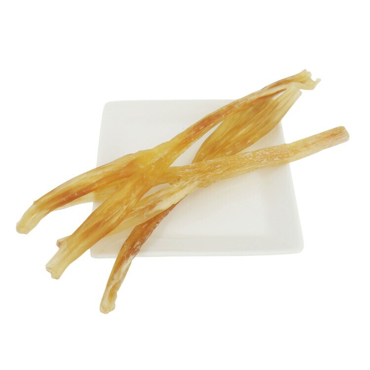無添加の牛アキレス。素材100%そのまま使用しているため、原料のおいしさをそのまま味わうことができるおやつです。ロングタイプで噛みごたえもあり、長時間噛んで食べられるおやつ。