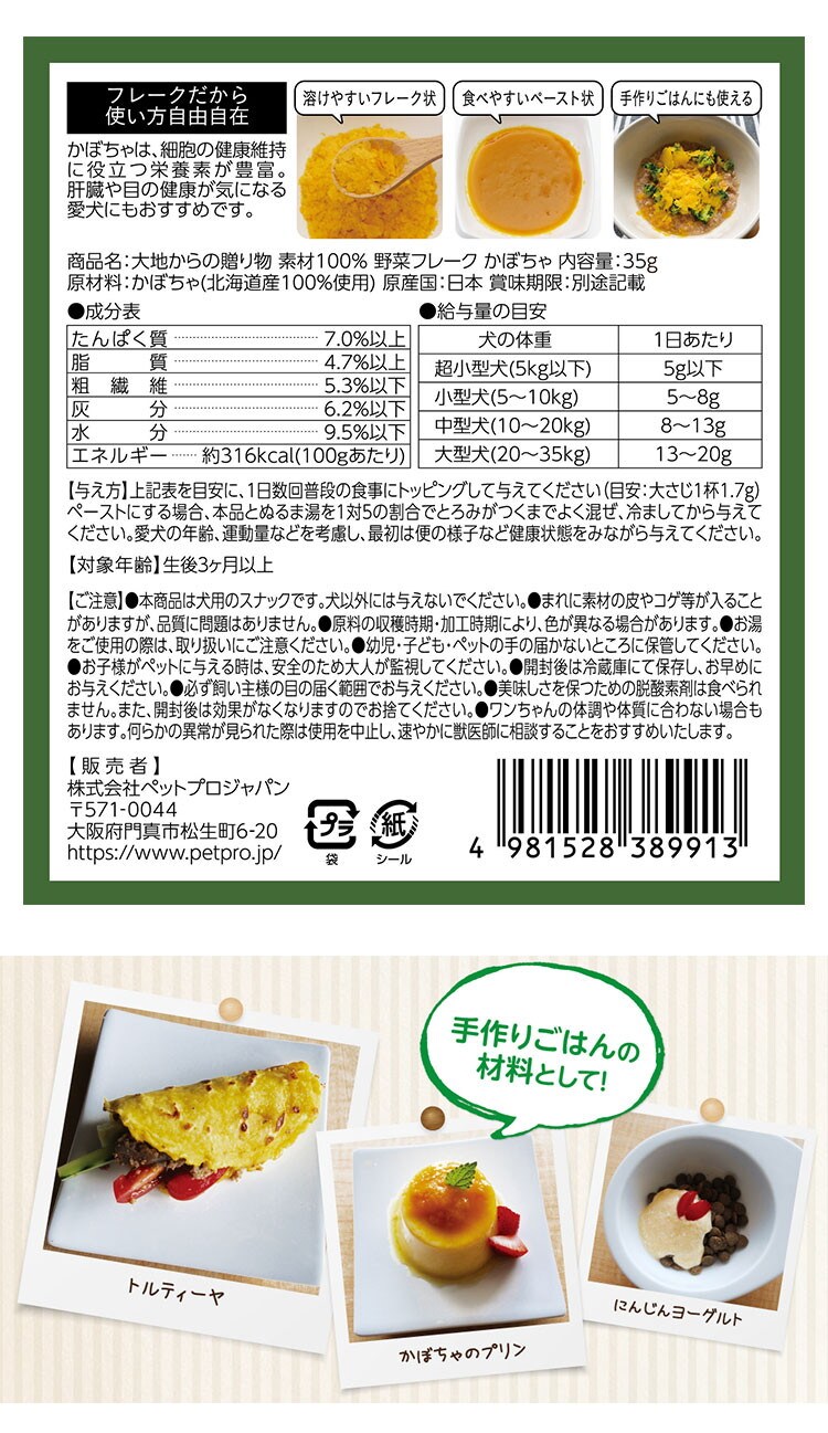 【8個セット】 ペットプロ HappyDays 大地からの贈り物 素材100%野菜フレーク かぼちゃ 35g 国産 日本製 犬用 犬 おやつ スナック ふりかけ トッピング【ポイント10倍】 【送料無料】