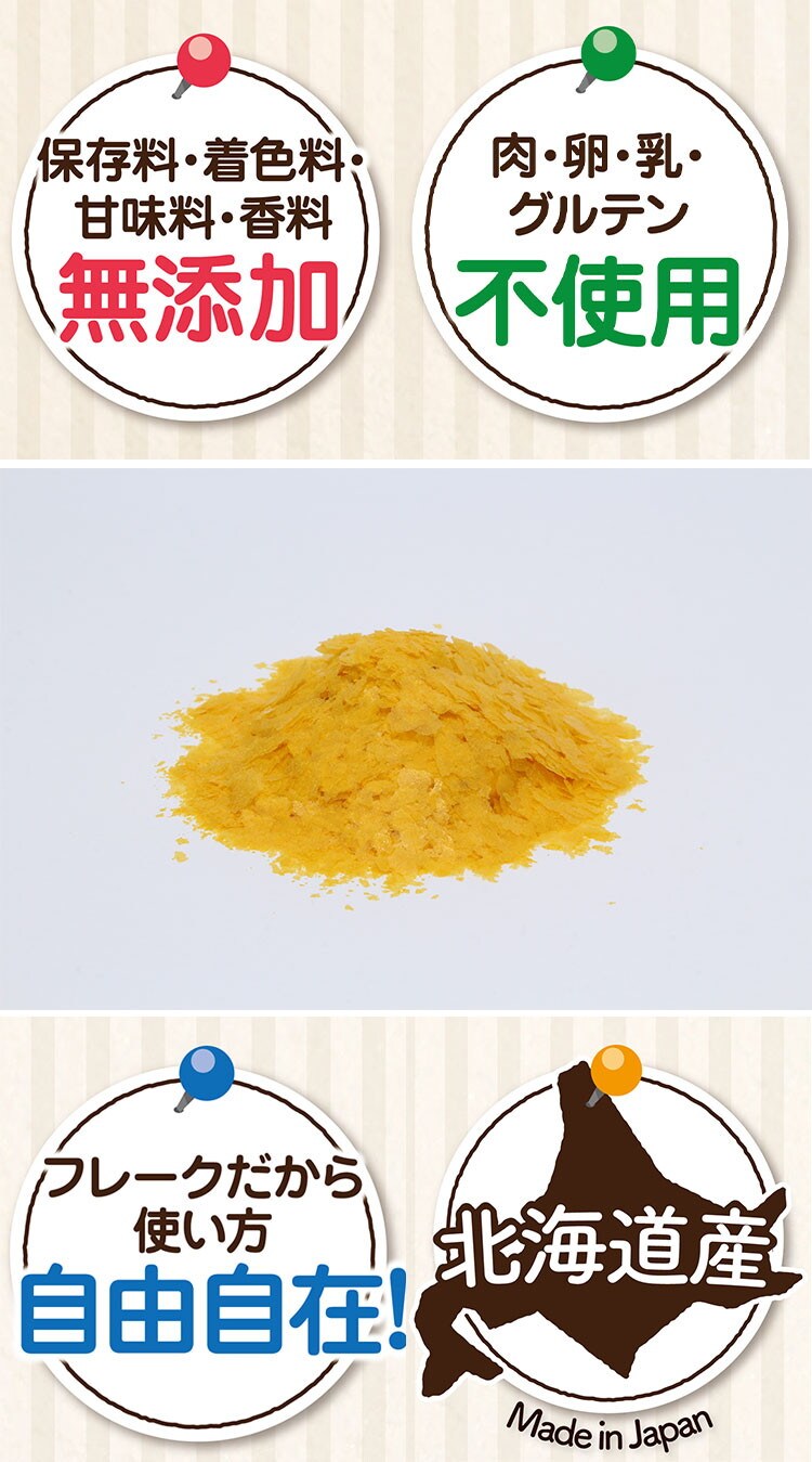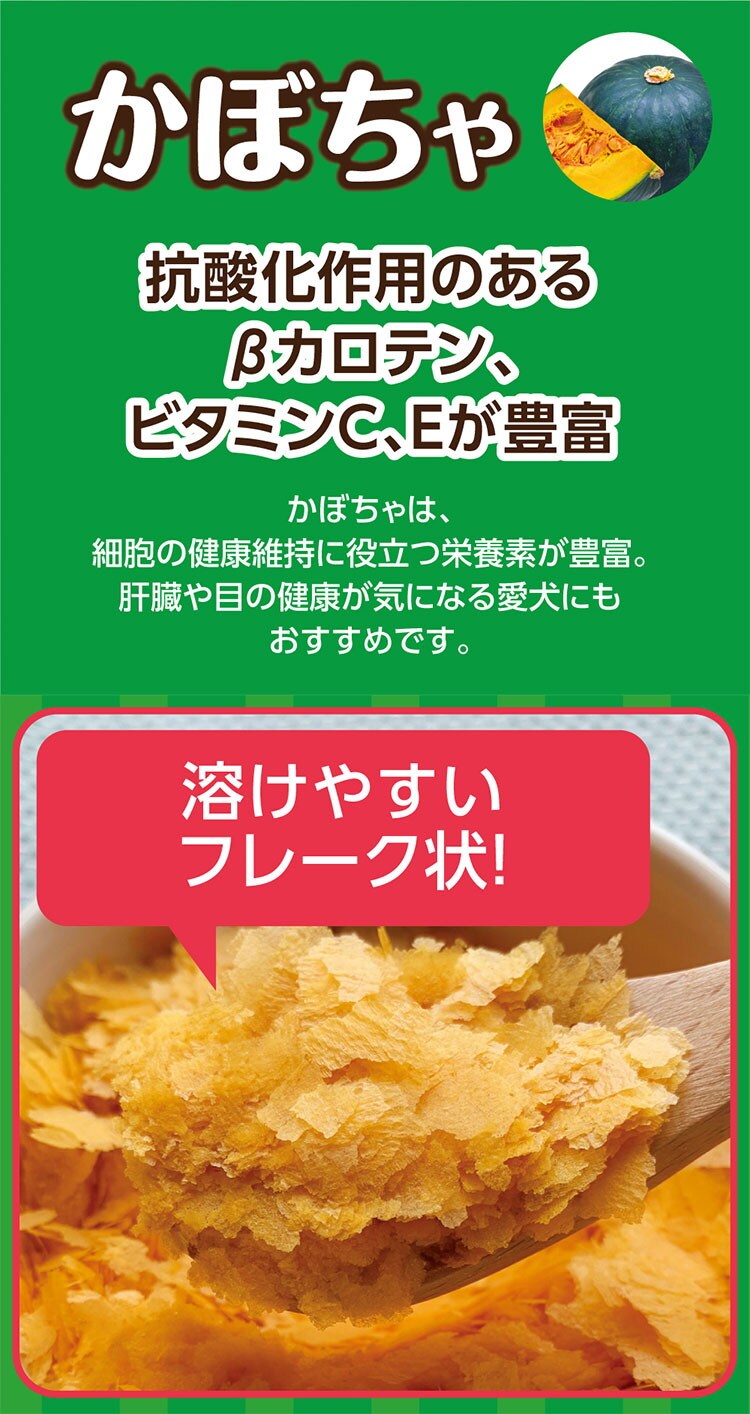 北海道産のかぼちゃを使用、素材の栄養そのままのフレーク。