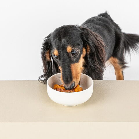 一日あたりの給与量の目安:超小型犬(5kg以下)5g以下、小型犬(5~10kg)5~8g、中型犬(10~20kg)8~13g、大型犬(20~35kg)13~20g