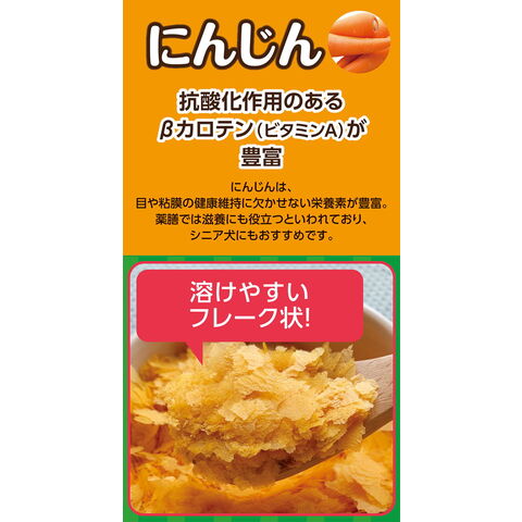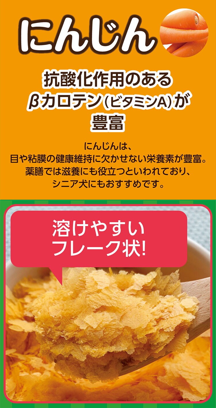 北海道産のにんじんを使用、素材の栄養そのままのフレーク。