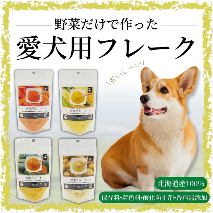 安心安全な国産(北海道産)100%のにんじんを素材のうまみと栄養そのままフレークにしました。にんじんは抗酸化作用のあるβカロテン(ビタミンA)が豊富。目や粘膜の健康維持に欠かせない栄養素も豊富です。薬膳では滋養にも役立つといわれており、シニア犬にもおすすめです。ふりかけとしていつものごはんにトッピングして、食べやすいペースト状にして、手作りごはんに、おやつになど使い方自由自在。