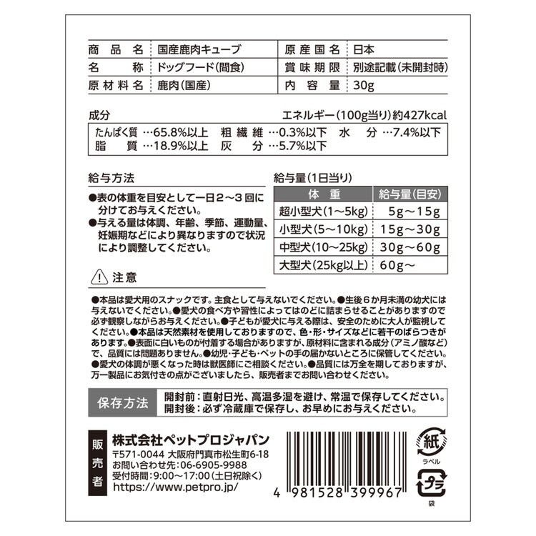 【8個セット】 ペットプロ HappyDays 国産鹿肉キューブ 犬用 30g【ポイント10倍】 【送料無料】