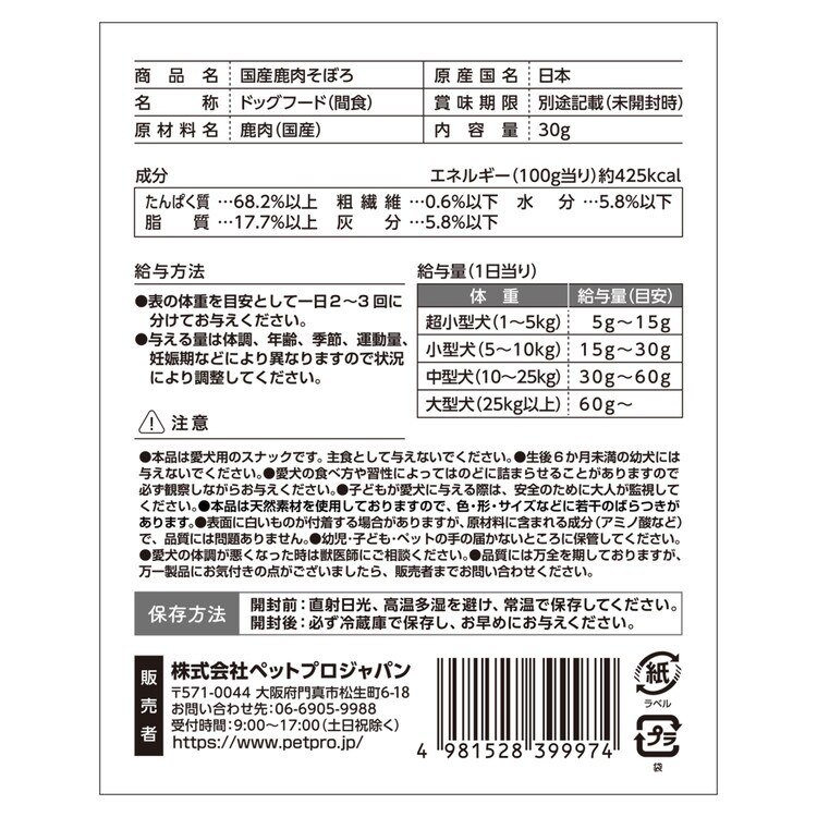 【8個セット】 ペットプロ HappyDays 国産鹿肉そぼろ 犬用 30g【ポイント10倍】 【送料無料】